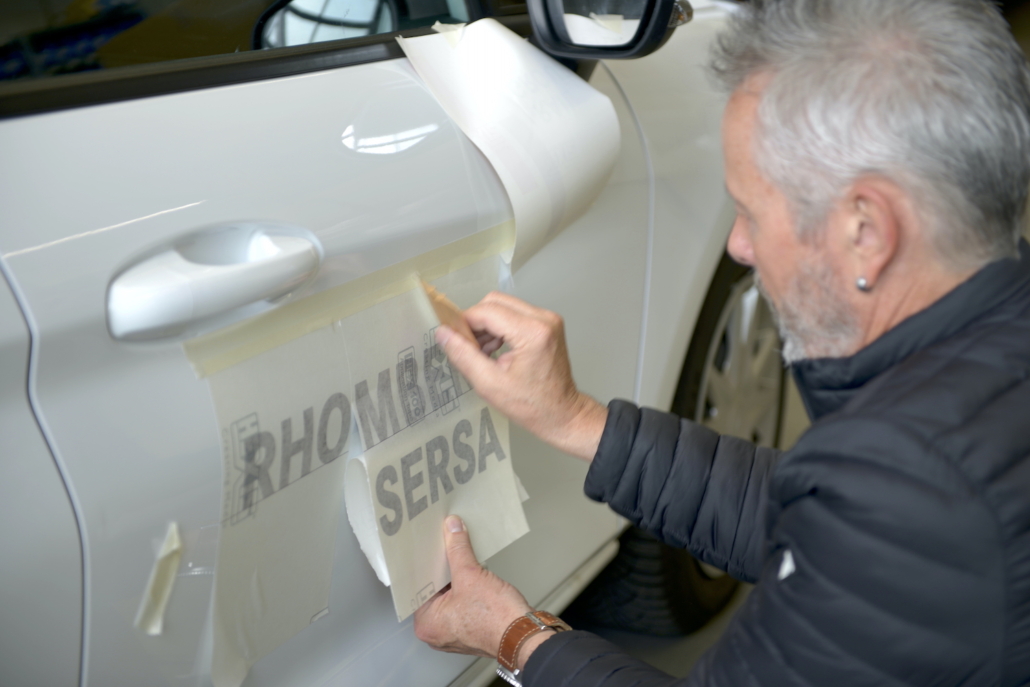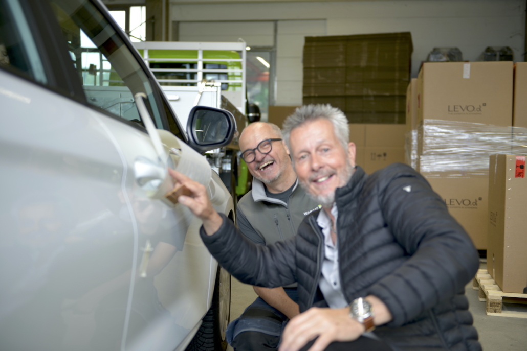 Hier ein paar Impressionen der jüngsten Fahrzeugbeschriftung, bei der Michel Wagner und René Frey gemeinsam Hand anlegten und sichtlich Spass dabei hatten.